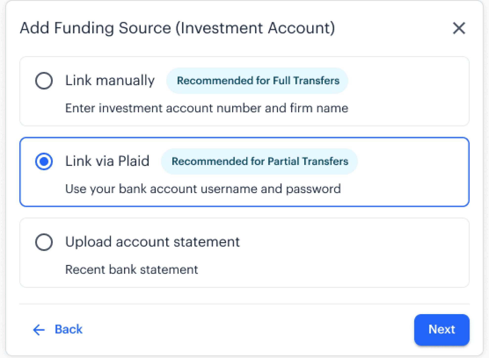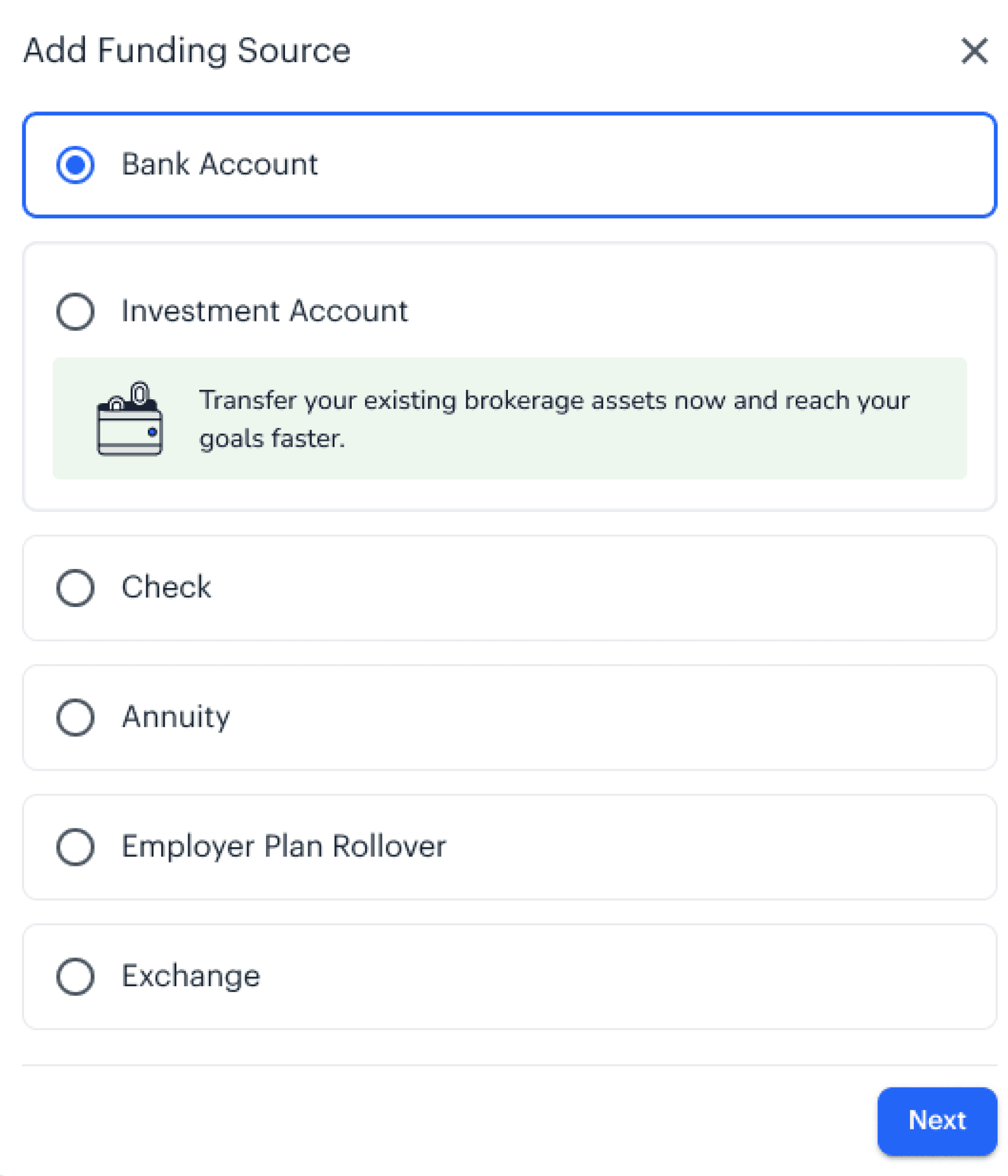 Multi - source funding to provide users a quicker onboarding experience and enhancing AUM for SigFig managed accounts