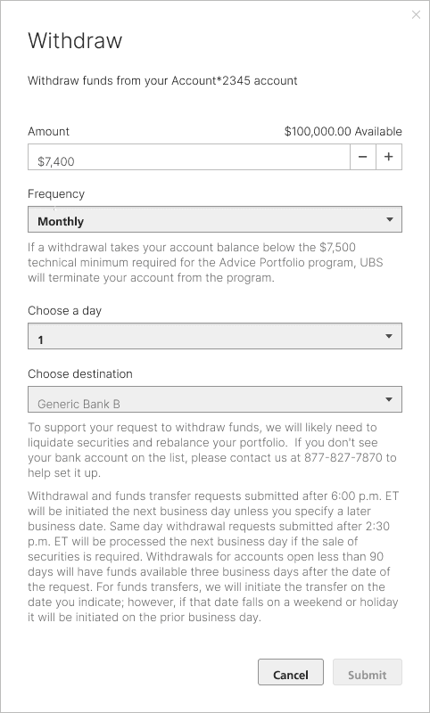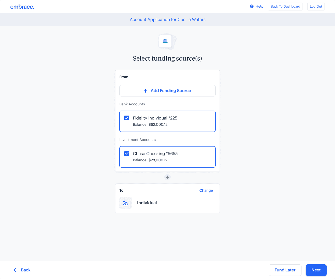 On their account page, customers can easily select where their funds come from and where they go—putting them in full control of their transactions.